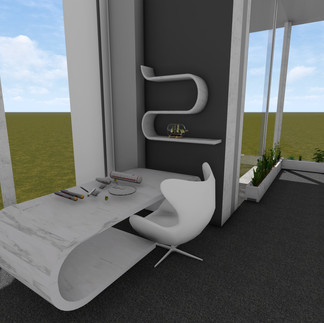 Mekanımda yola çıktığım kavram bilardo oyununda topların toplandığı üçgen raftır. Bu üçgeni bir nevi parçalayarak duvarlar ördüm ve bu alanın içinde ise bilardo odam bulunmaktadır. Kavram olarak bilardodaki