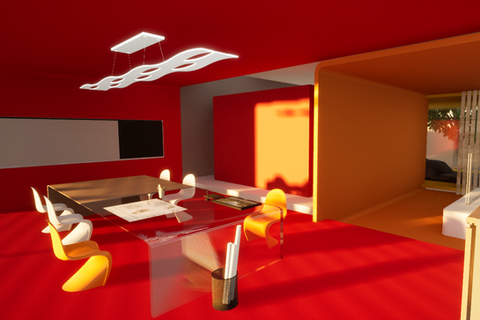 Dış görünüşünden içeri hakkında büyük fikir oluşturduğu gibi iç mekanlarında da organik form kaygısı güdüldü. Islak hacimde Joe Colombo’nun “Total Furnishing Unit” eserinden esinlenerek tuvalet, duş ve lavabo alanları bir ünite içerisinde tanımlandı. Yılmaz Zenger’in çok işlevselliğe verdiği önemle de uyum sağlayan ünite mantığı yaşam alanında da kendini oturma, okuma ve sergileme alanını tek bir düzlem üzerinde şekillendirilerek kullanılmasıyla bütünleştirildi.