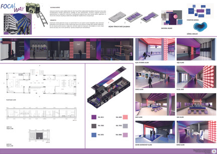 Yürürken tavanda hizalanan renkli ve ışıklı pleksiyle, mekanın ismi olan focalway ı oluşturan yol tasarlandı ve iz düşümü de yerde aydınlatmalarla gösterildi.