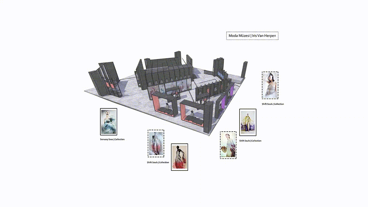 Moda Müzesi, Iris Van Herpen’nin kıyafet tasarımlarının sergilendiği interaktif ve dijital etkileşimleri olan bir müzedir. Projenin kavramsal yaklaşımı Iris Van Herpen’nin kıyafet tasarımı anlayışından yola çıkarak oluşturulmuştur. Iris Van Herpen’nin tasarımları genellikle bedenin üzerine tasarlanmış strüktürel formlardan oluşur. Örneğin Skeleton Dress isimli tasarımda bu yaklaşımı doğrudan görebiliriz. Bu tasarımda aslında bedenin üzerine yeni bir iskelet yeni bir strüktür tasarlanmıştır ve bu ele alış biçimi mekânsal anlamda düşünüldüğünde bedenin, yani hacmin üzerine yeni bir strüktür ile kaplanmıştır.