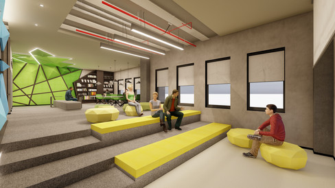 Kırılma kavramanı tüm mekana keskin hatlar ile vurguladık. Ofis 7 mekandan oluşmaktadır. Bu alanlar sırasıyla toplu çalışma alanı, bireysel çalışma alanı, toplantı alanı, dinlenme alanı, sergileme alanı, amfi bölümü ve kitchennette olarak sıralanmaktadır.