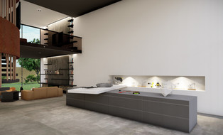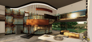 Bu mekan; İlhan Koman’ın sonsuzlık-1 serisinden ilham alarak tasarlanmıştır. Bir yüzey parçalanarak farklı eksenlerde oluşturduğu düzlem alanlar tanımladı. Bu mekan, açık bir sistemle tasarlanmıştır. Yırtılan yüzeyin oluşturduğu alanlar da özel ve toplu yaşam alanlarını oluşturmaktadır. Proje çözümünde geniş bir atölyeye yer verilmiş ve atölyenin her yerden kolay ulaşılabilir olması önemsenmiştir. İç-Dış kabuk ilişkisi kuran ve kağıt parçalanması efekti veren bu hacim, iç hacimde sarmalayan ve kısmi mahremiyet oluşturabilen alanlar tanımlıyor. Mekanın açık sistemle tasarlanması sebebiyle ayrışan mekanlar arası iletişim çok güçlüdür. Mekanın atmosferinde etkin iki ana malzeme; konsept duvarın dış kabuğuna kaplanmış oksitlenmiş metal ve iç kabukta donatılaşmasını sağlayan ahşap lambri’dir. Son olarak tasarımın oluşumunda İlhan Koman’ın sanata bakış açısını yansıtan bir söz tasarımcının odağı olmuştur.